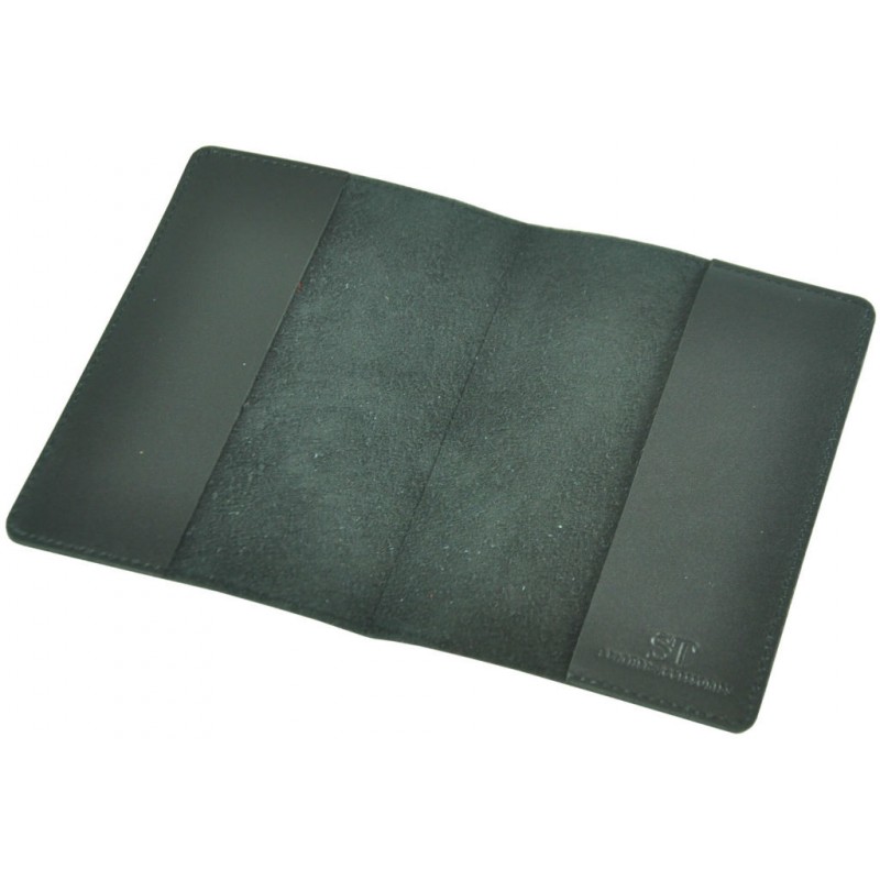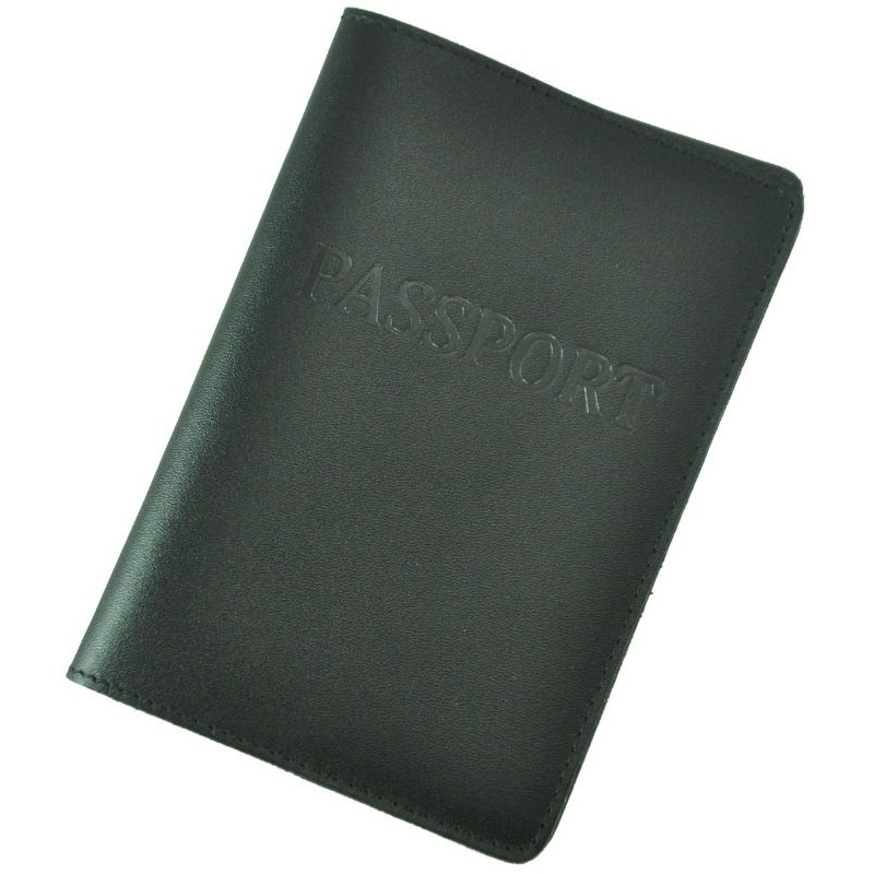 Шкіряна обкладинка для паспорта Pass чорна виготовлена з натуральної гладкої шкіри.