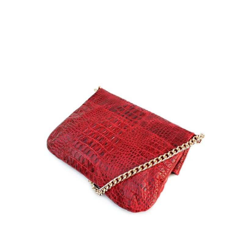 - Шкіряна сумочка-клатч POOLPARTY з ланцюжком poolparty-red-crocodile-clutch червоного кольору.