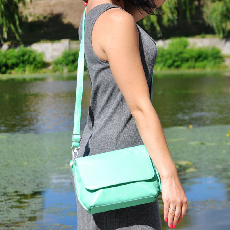 - Шкіряний жіночий клатч Cross ментоловий через плече.