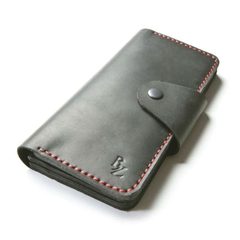 - Шкіряний гаманець BOGZ «Мадлен» P19M5S1 з натуральної шкіри Crazy Horse чорного кольору прошитий червоною ниткою.