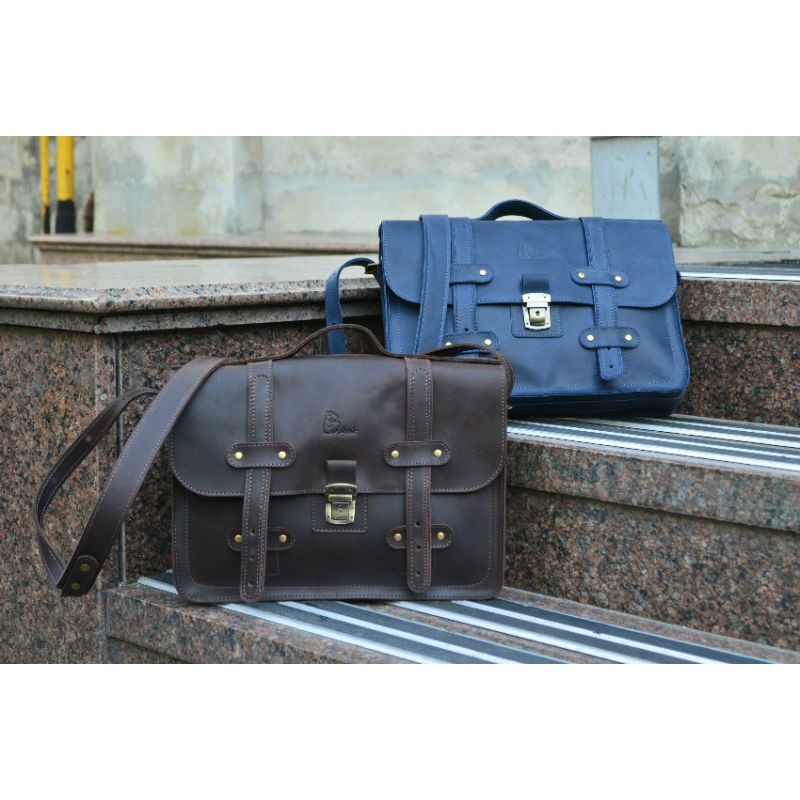 - Портфель 863365+ з натуральної шкіри кольору коньяк.