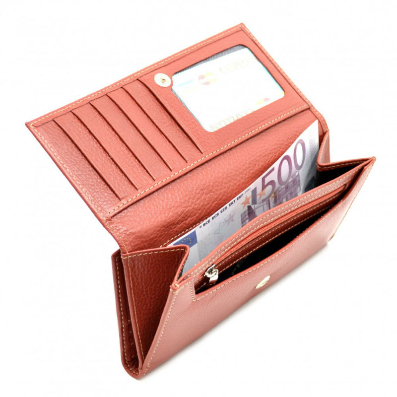 - Жіночий шкіряний гаманець CANPEL 157-306 кораловий з натуральної шкіри флотар.