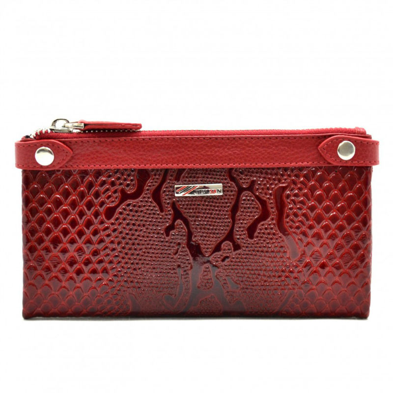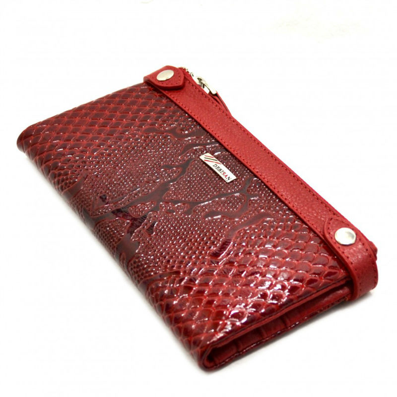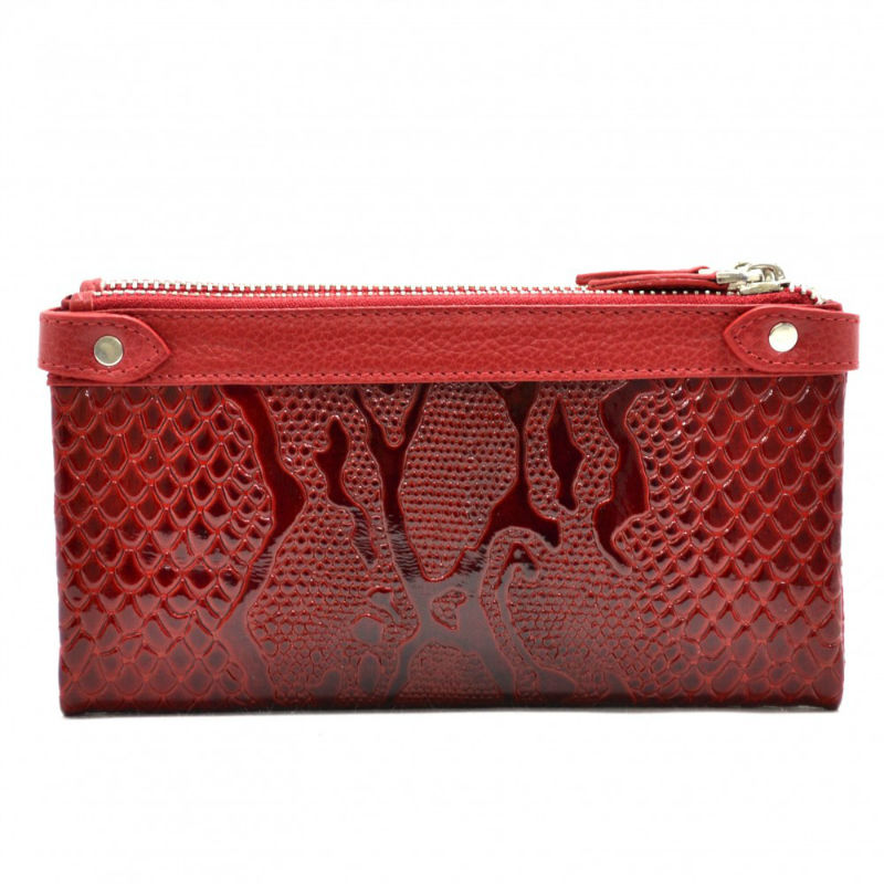 - Жіночий гаманець Desisan 320-500 червоний виготовлений з натуральної лакованої шкіри з візерунком.