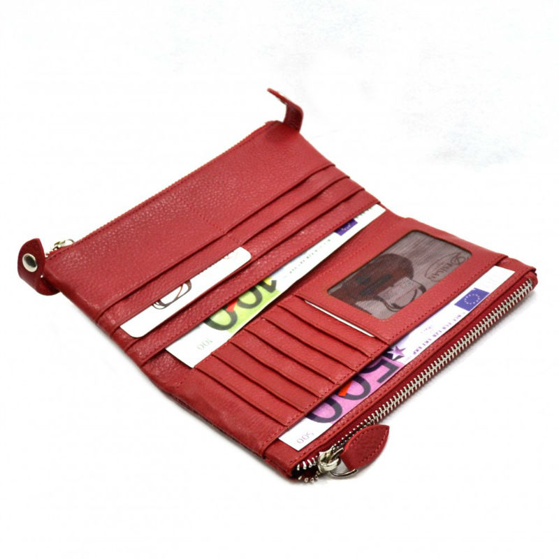 - Всередині: 2 відділення на блискавці, 12 кишеньок для карток, прозора кишеня, 2 відділення для купюр.