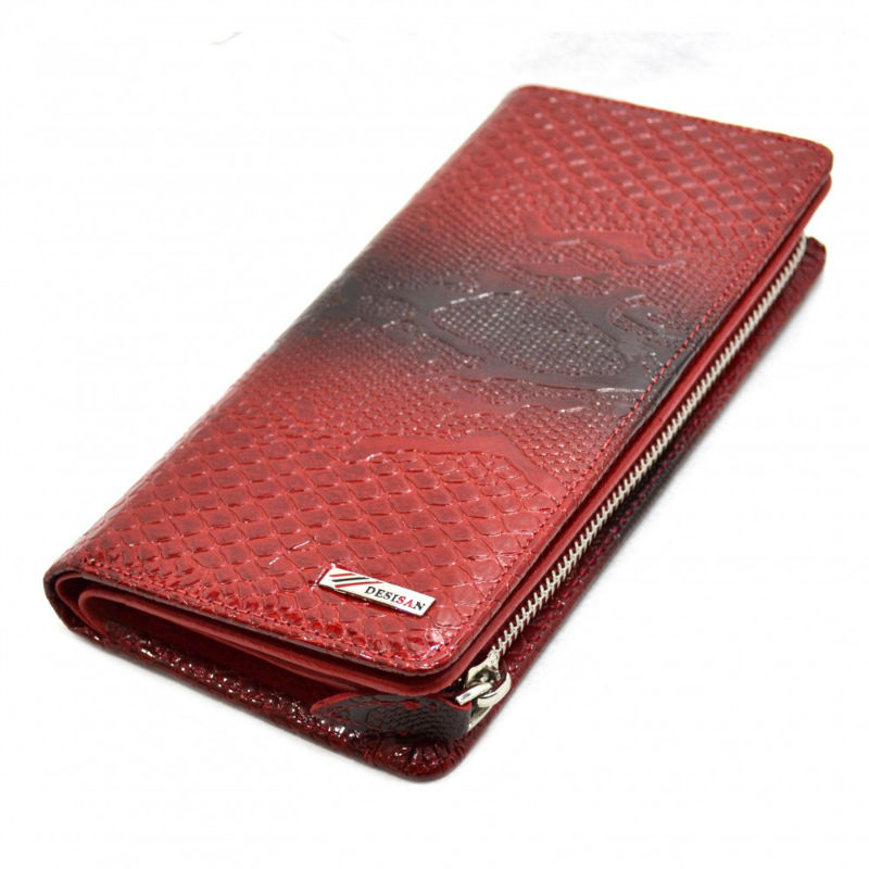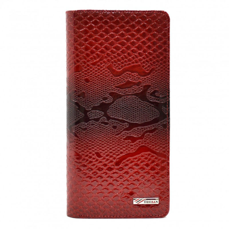 - Жіночий шкіряний гаманець Desisan 321-500 червоний з натуральної лакованої шкіри з візерунком.