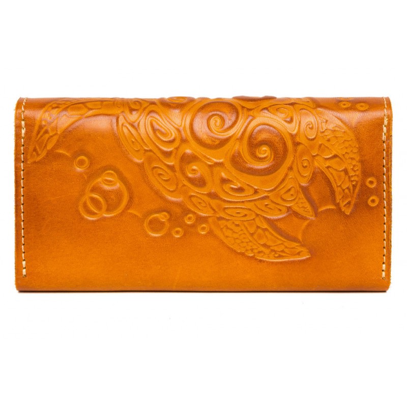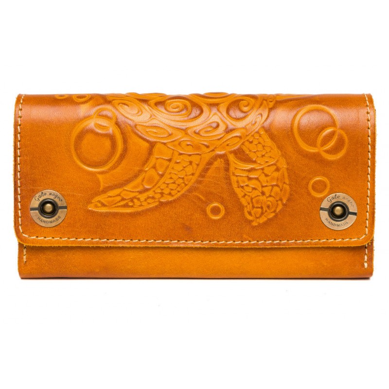 - Гаманець-клатч Gato Negro Alfa Big Turtle Orange виконаний з натуральної шкіри помаранчевого кольору.