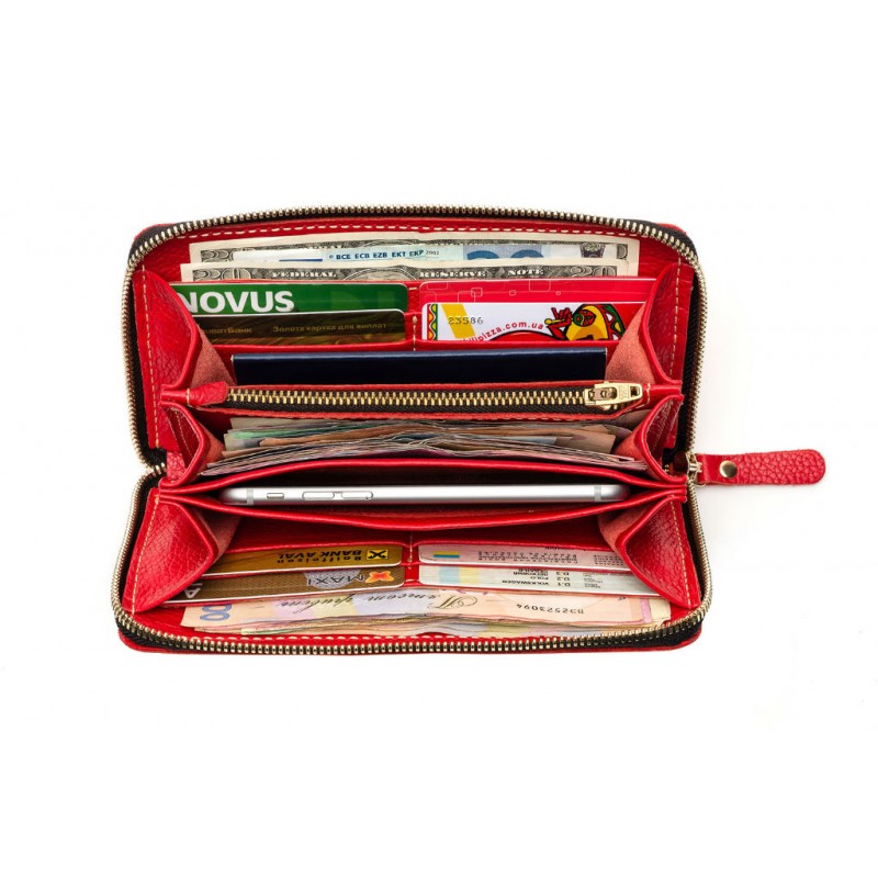 - Всередині: 3 великих загальних відділення, куди помістяться і паперові купюри, і документи, 1 відділення на блискавці, 1 відділення для мобільного телефону, 2 бічних полускрытых відділення для купюр, 8 кишеньок для карток.