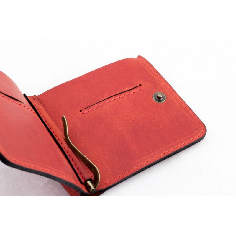 - Гаманець-затиск для грошей Микро червоний виконаний з вінтажної натуральної шкіри Крейзі Хорс.