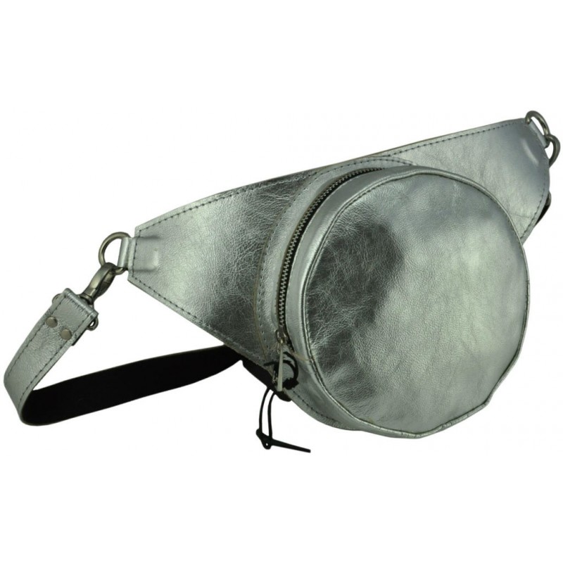 Шкіряна бананка U-06 срібляста виконана з натуральної щільної шкіри сріблястого кольору.