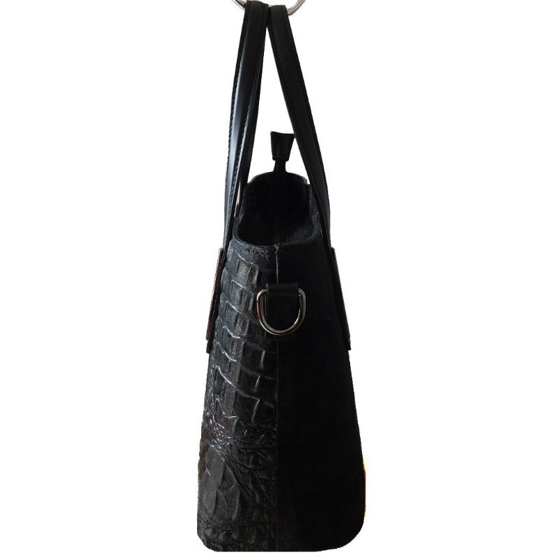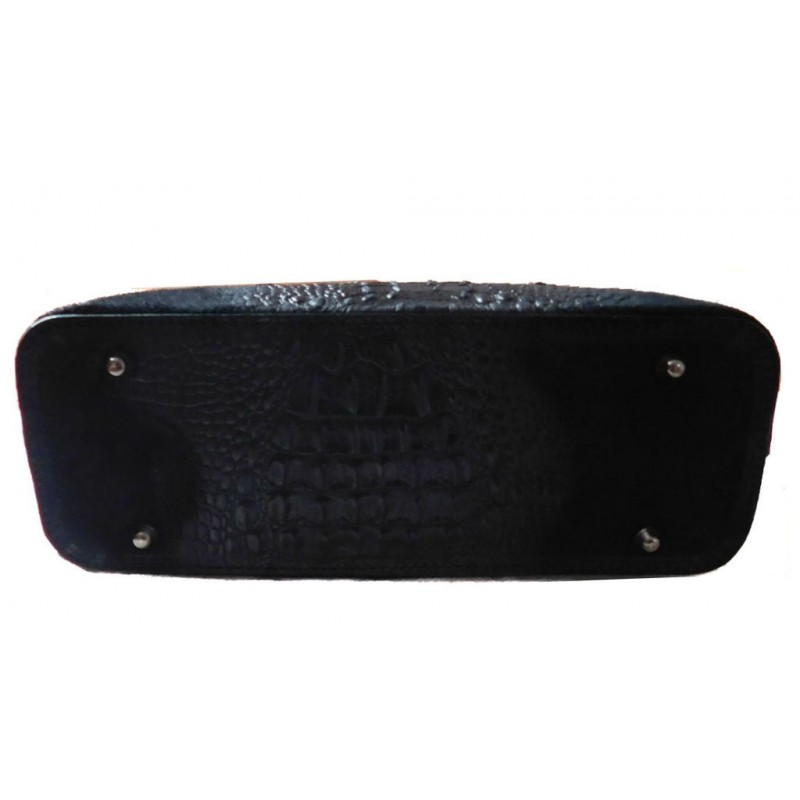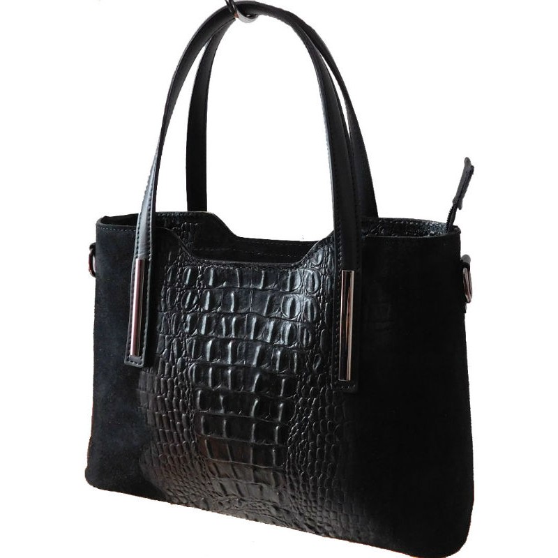 - Шкіряна жіноча сумка BC1032 чорна виконана з натурального замша і натуральної шкіри під крокодила.