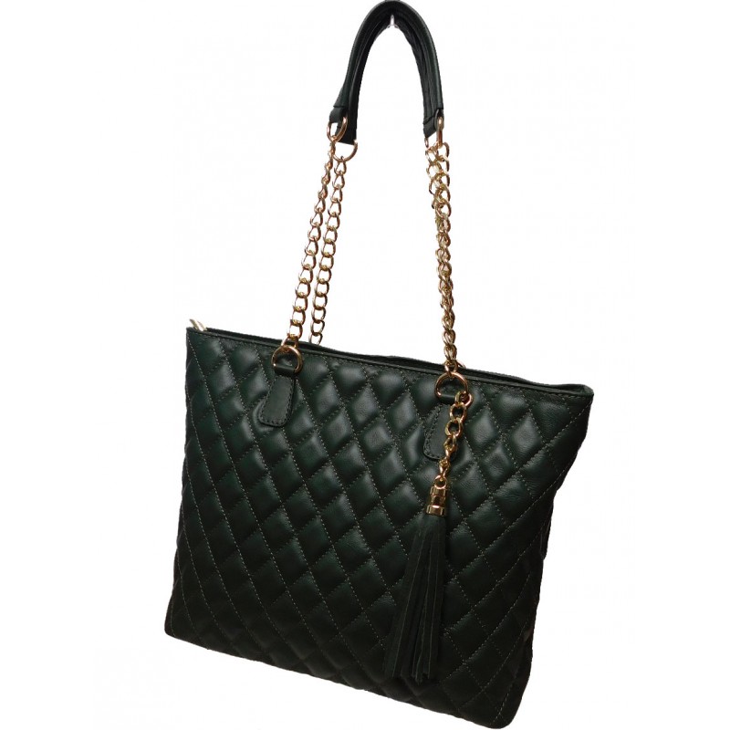 - Зручна шкіряна жіноча стьобана сумка Bottega Carele BC230-green зелена.