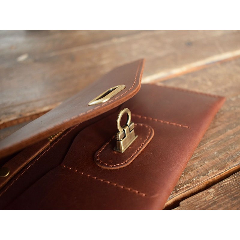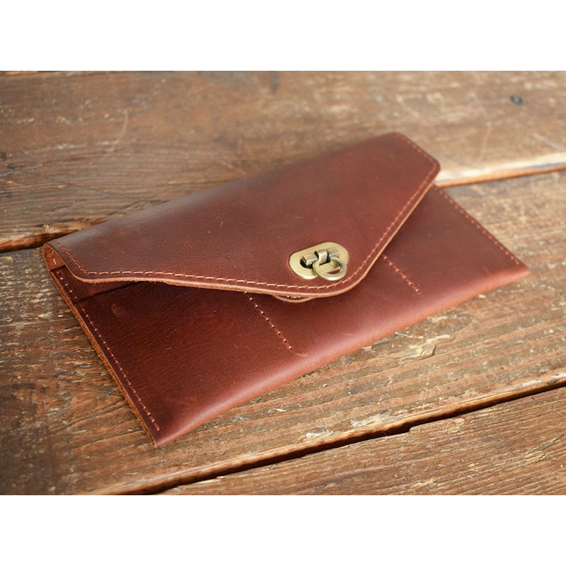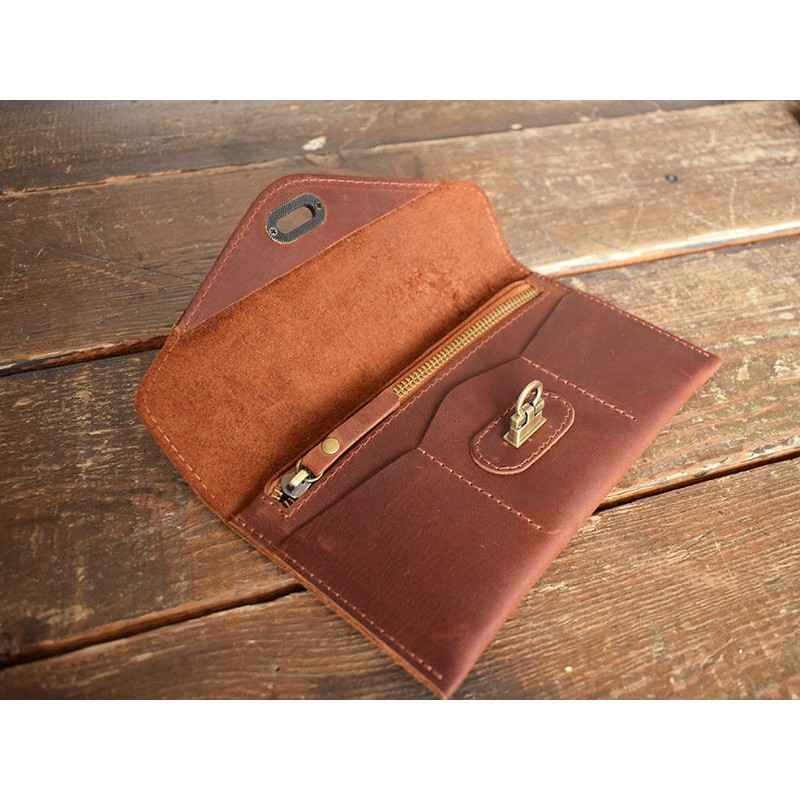 - Шкіряне портмоне-клатч коньяк виконано з натуральної гладкої шкіри.