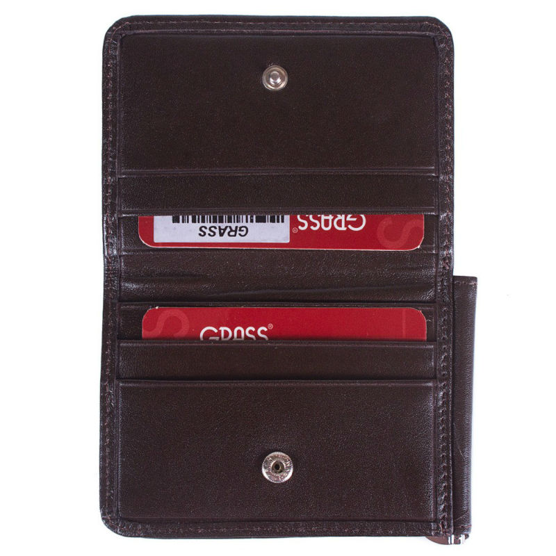 - Зручна кредитниця з затискачем шкіра GRASS 533-4 коричневий гладкий.