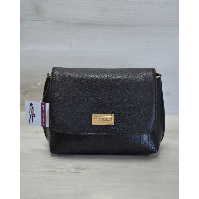 - Маленький універсальний жіночий клатч Welassie чорний крокодил з гладким чорним 60511 зроблена з високоякісної шкіри PU.