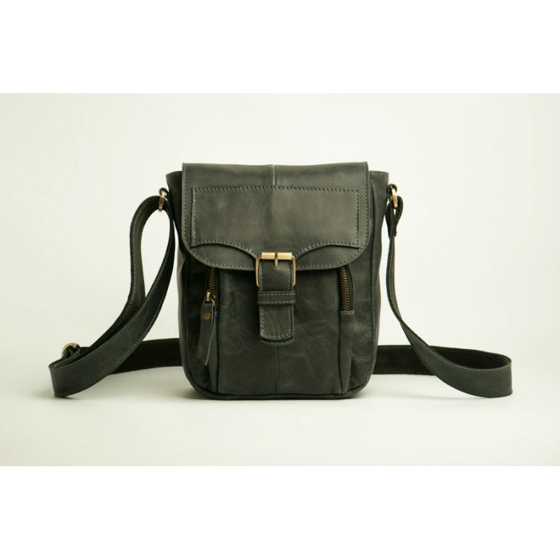- Невелика чоловіча шкіряна сумка месенджер Wellbags Messenger Alnair gray mini W057.1 сірого кольору.