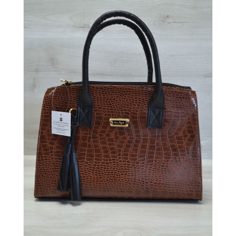 - Стильна молодіжна жіноча сумка Welassie Пензлик рудий крокодил з гладким чорним 52018.