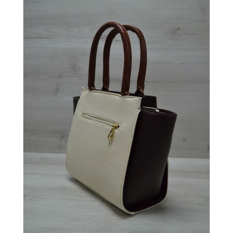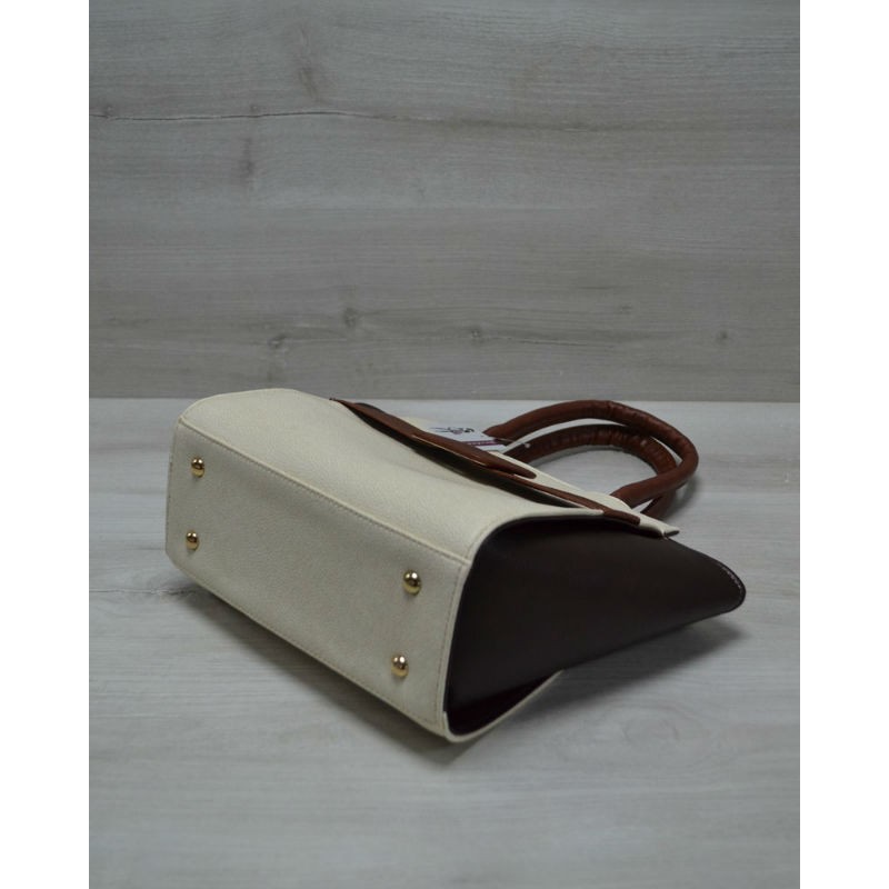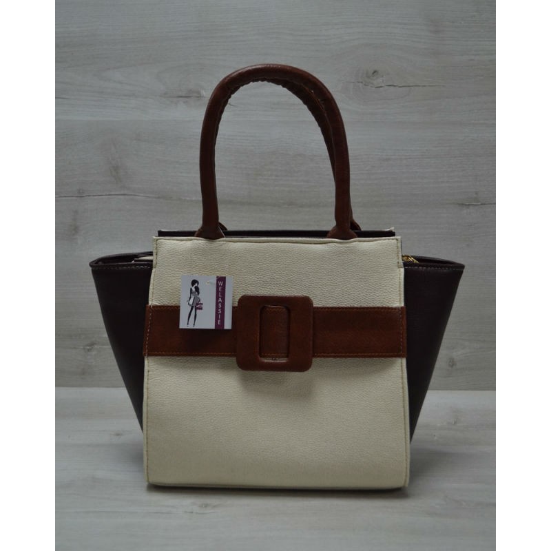 - Модна молодіжна жіноча сумка Welassie Комбінована бежевого кольору з рудим ременем 52201.