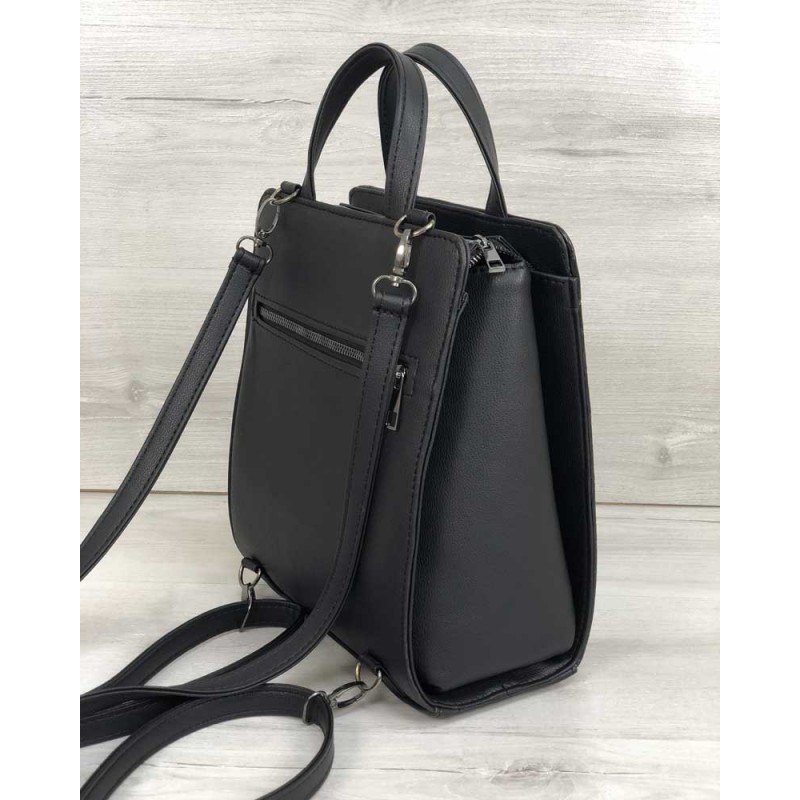 - Класний молодіжний каркасний сумка-рюкзак Welassie чорного кольору зі вставкою чорний крокодил 44801.