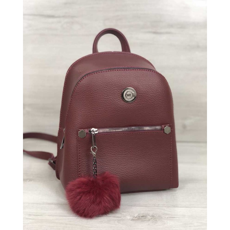 - Красивий молодіжний рюкзак Welassie Бонні з пушком бордового кольору 44407.
