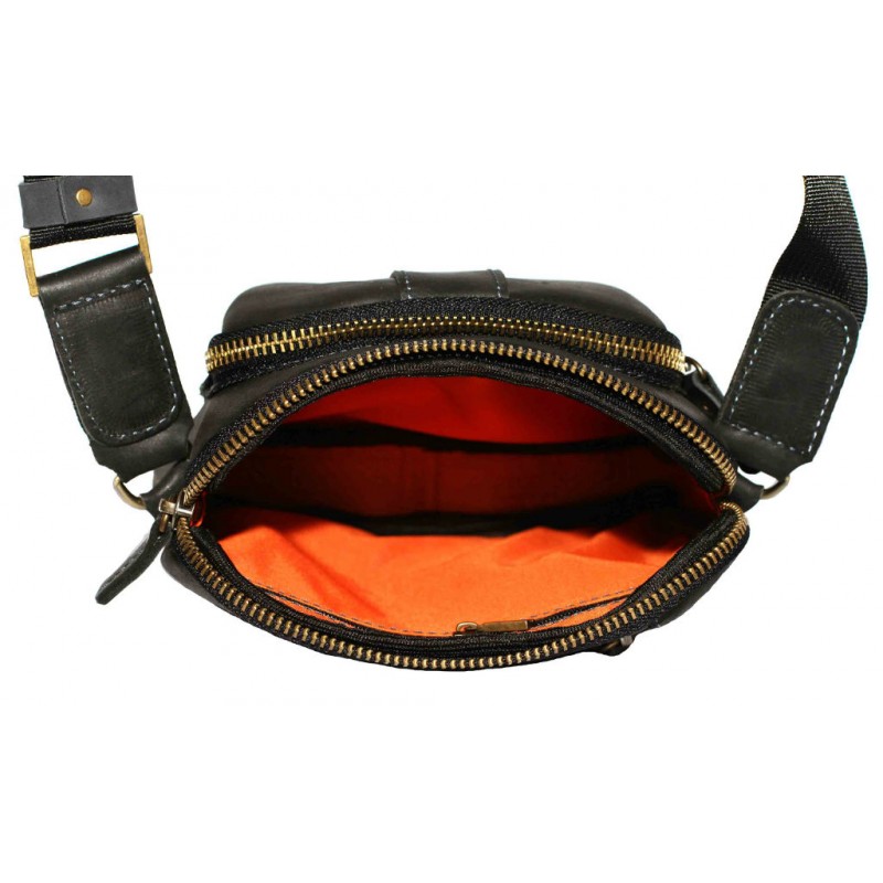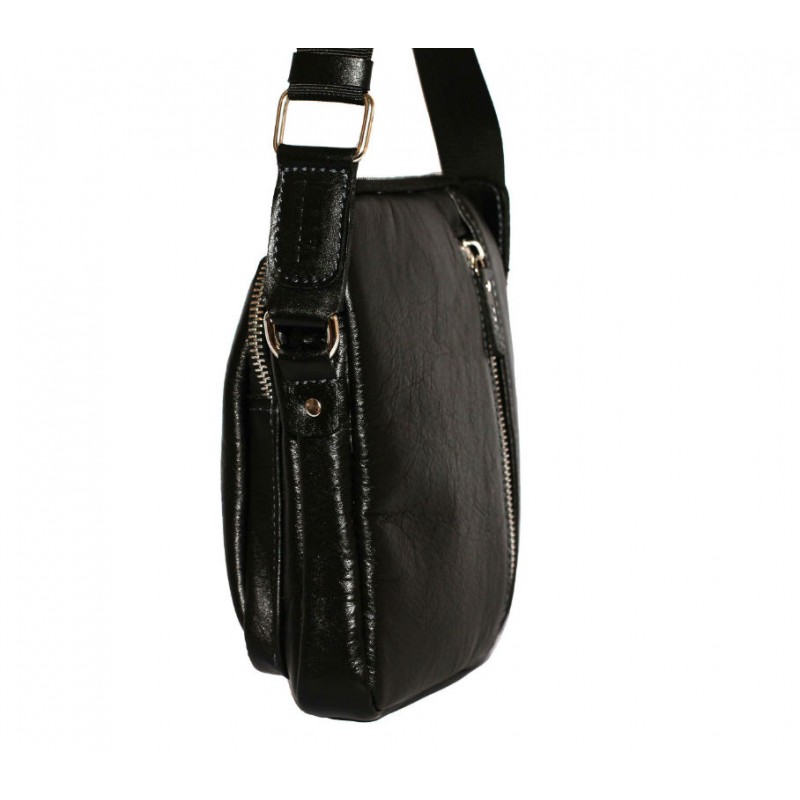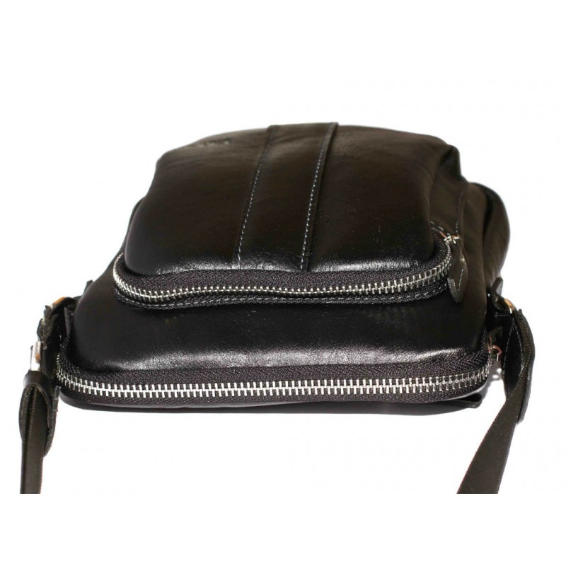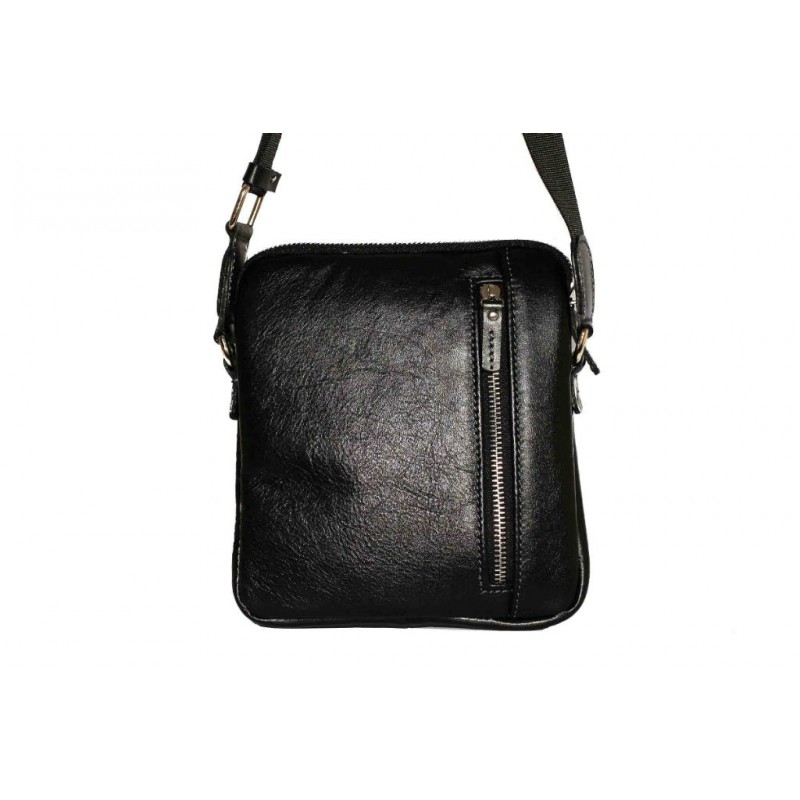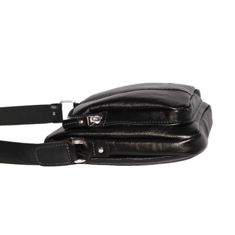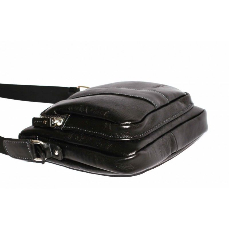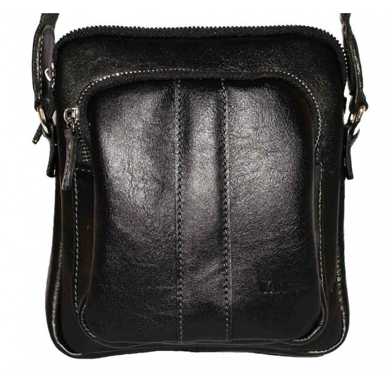 Невелика чоловіча шкіряна сумка VATTO Mk-48 Kаz1 чорного кольору глянцевою фактури відмінно поєднується з повсякденним стилем чоловічого одягу.