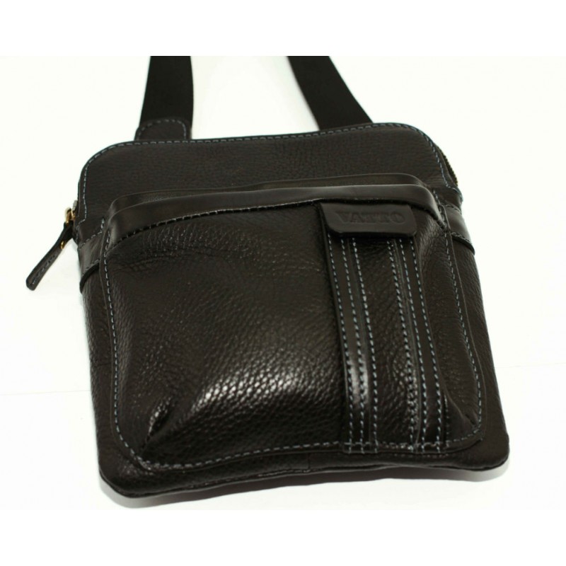 Плоска чоловіча шкіряна сумка VATTO Mk-54 FL8Kаz1 виконана в чорному кольорі з натуральної шкіри.