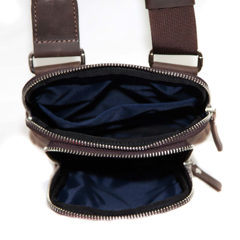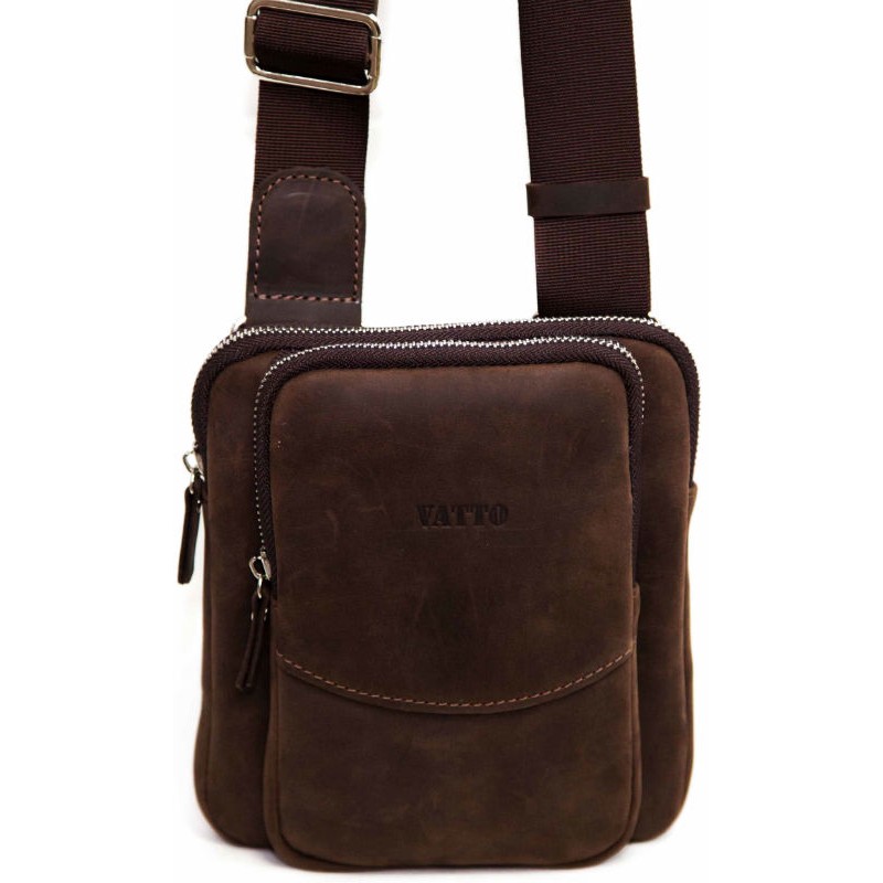 Чоловіча шкіряна сумка VATTO Mk12 Kr450 коричневого кольору з вінтажній текстурою виглядає дуже красиво і підійде для щоденного використання. Маленький розмір як раз підходить для дрібних речей.
