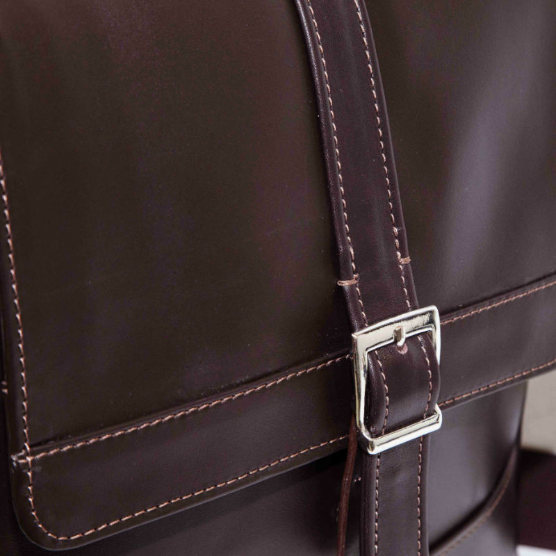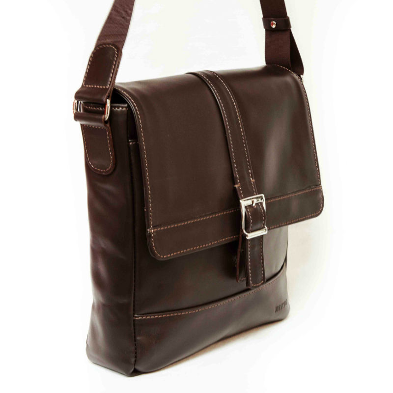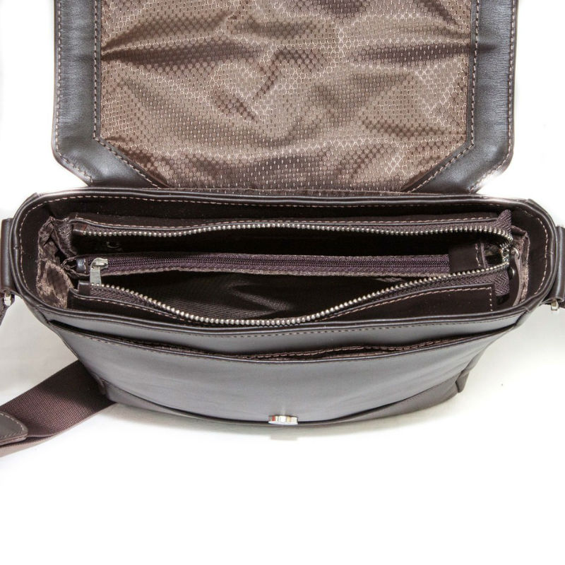 - Модель чоловічої шкіряної сумки виконана без ручок, але зі зручним плечовим ременем.