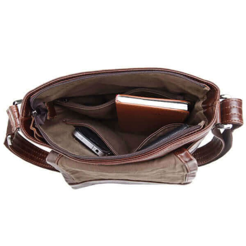 - Чоловіча сумка через плече Jasper&Maine 7121C темно-коричнева виготовлена з вінтажної натуральної шкіри.
