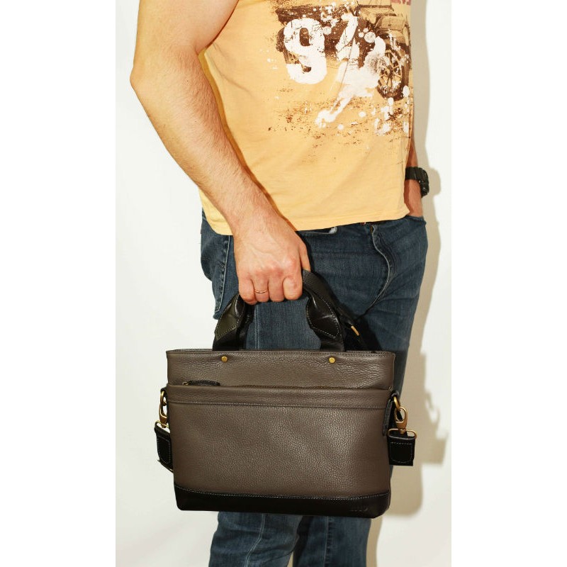 - Чоловіча сумка портфель VATTO Mk13.2Fl13Kaz1 сірого кольору вироблена з натуральної шкіри флотар.