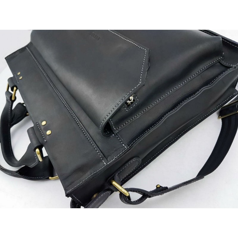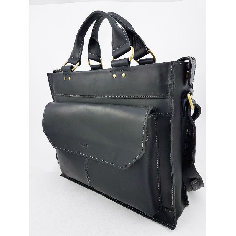 - Чоловіча сумка-портфель VATTO Mk45.4Kr670 чорна з матової натуральної шкіри.