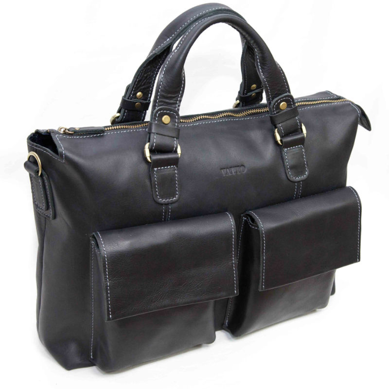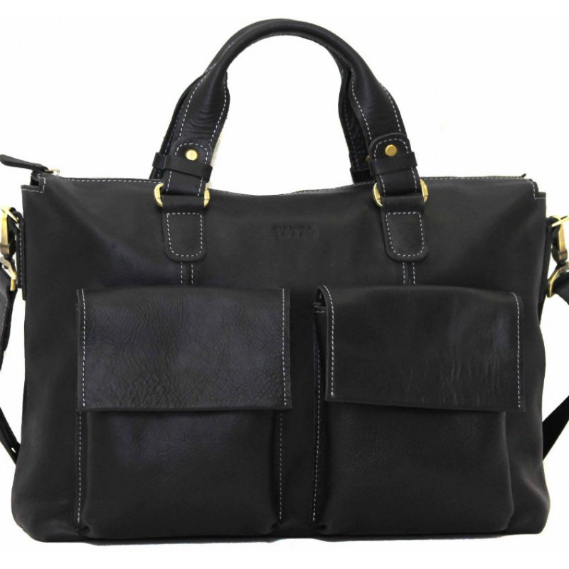 Суворий чоловічий шкіряний портфель VATTO MK25Kr670 чорного кольору матовою структури стильно виглядає в будь-якому образі.