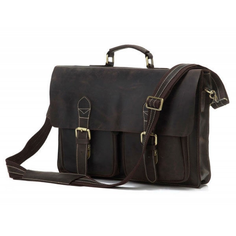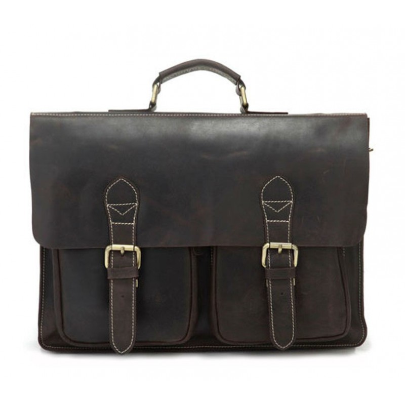 - Місткий чоловічий шкіряний портфель TIDING BAG 7105R темно-коричневий з натуральної шкіри з ефектом старіння.