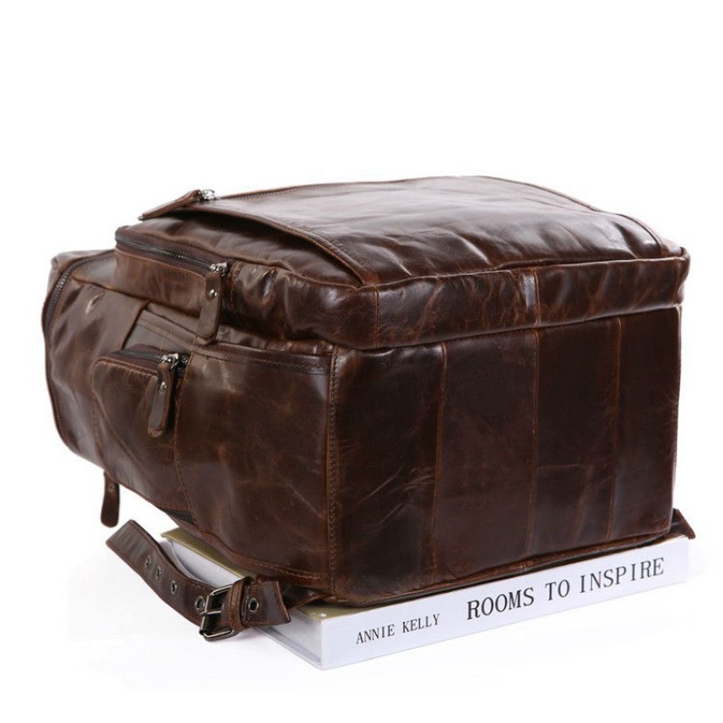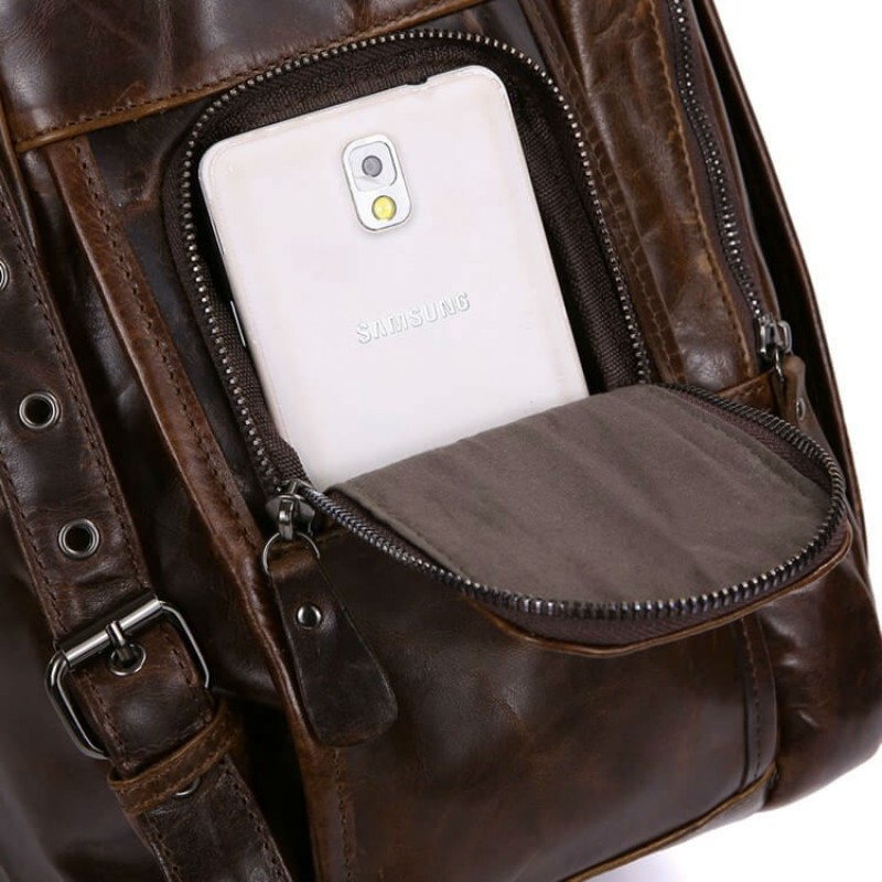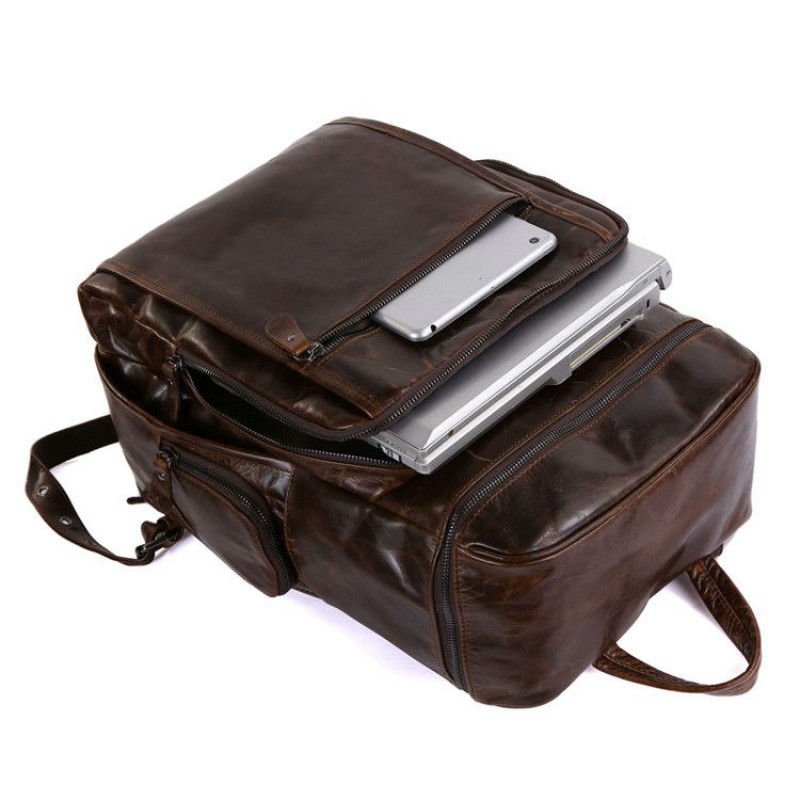 - Чоловічий шкіряний рюкзак TIDING BAG 7202C коричневий з натуральної шкіри з ефектом старіння.