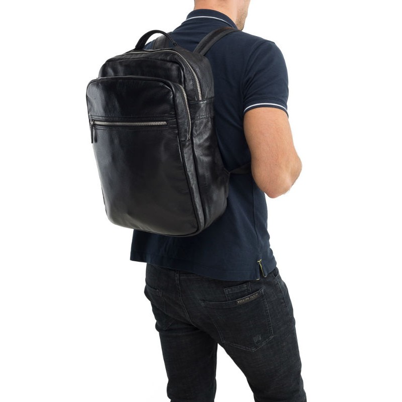 - Чоловічий рюкзак Tiding Bag M864A чорний виконаний з натуральної гладкої шкіри.