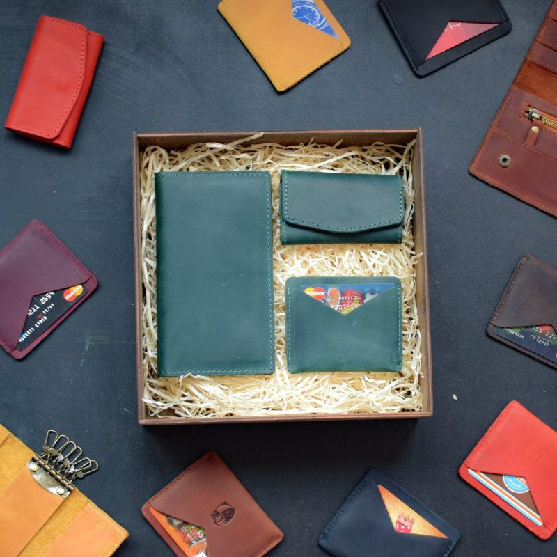 - Набір шкіряних аксесуарів BABAK Avila зелений підійде як подарунок на будь-яке свято.