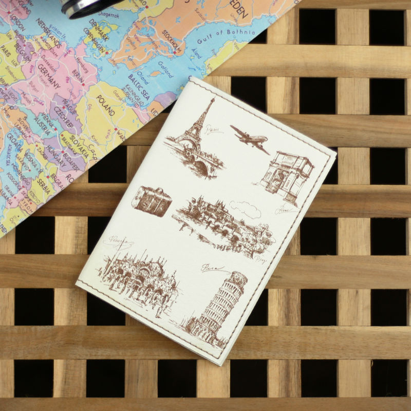 - Обкладинка для паспорта "Подорож до Європи" + блокнотик зроблена з високоякісної італійської штучної шкіри з принтом.