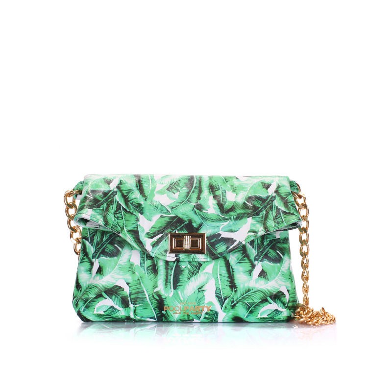 - Шкіряна сумочка-клатч POOLPARTY з ланцюжком palm-clutch зелена пальмове листя.