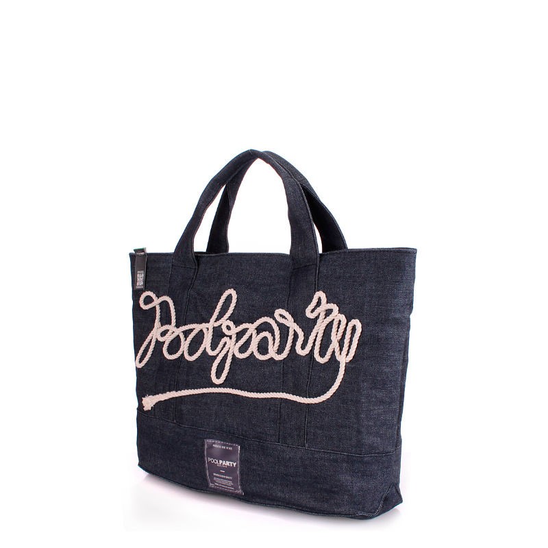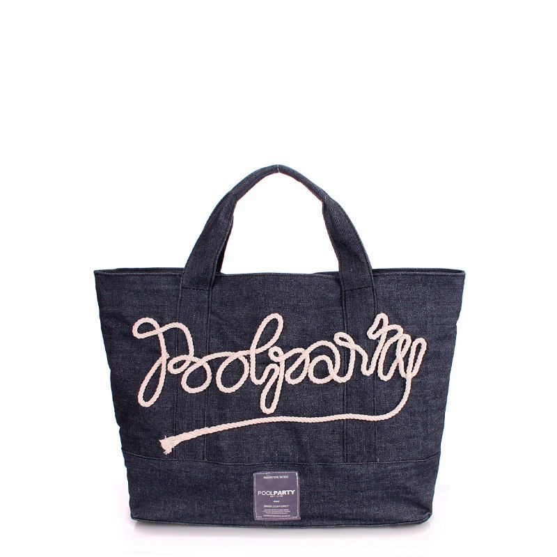 - Джинсова сумка POOLPARTY poolparty-sailor-jeans синя оздоблена написом з канату спереду.