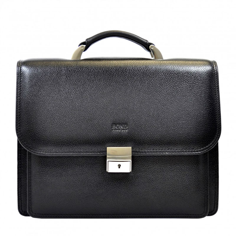 - Функціональний каркасний чоловічий портфель шкіра BOND 1202-281 чорний флотар.
