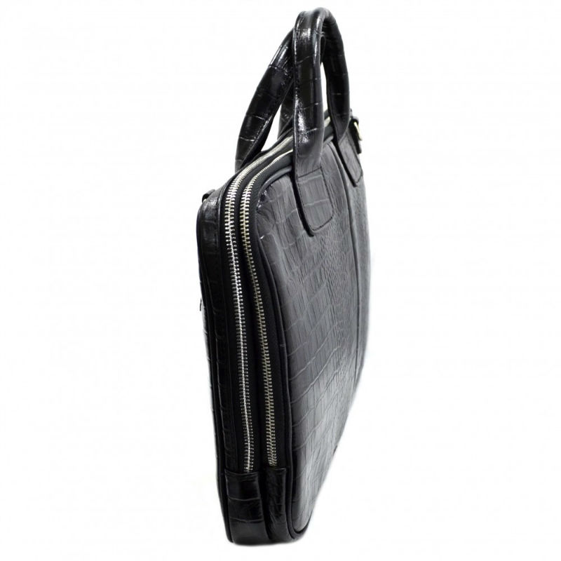 - Шкіряний портфель Desisan 052-11 чорного кольору з натуральної шкіри з тисненням під крокодила.