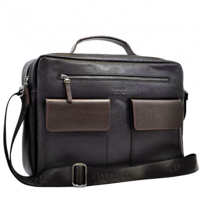 - Стильний чоловічий портфель м'який шкіра BOND 1120-281-2 чорний-коричневий.