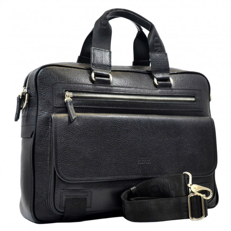 - Представницький і функціональний портфель м'який шкіра BOND 1364-281 чорний флотар.