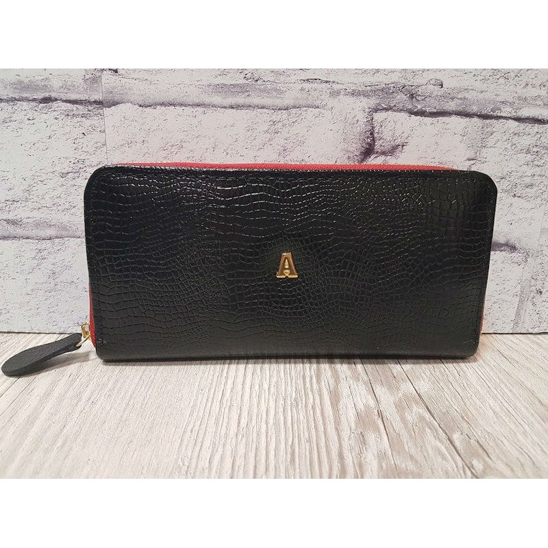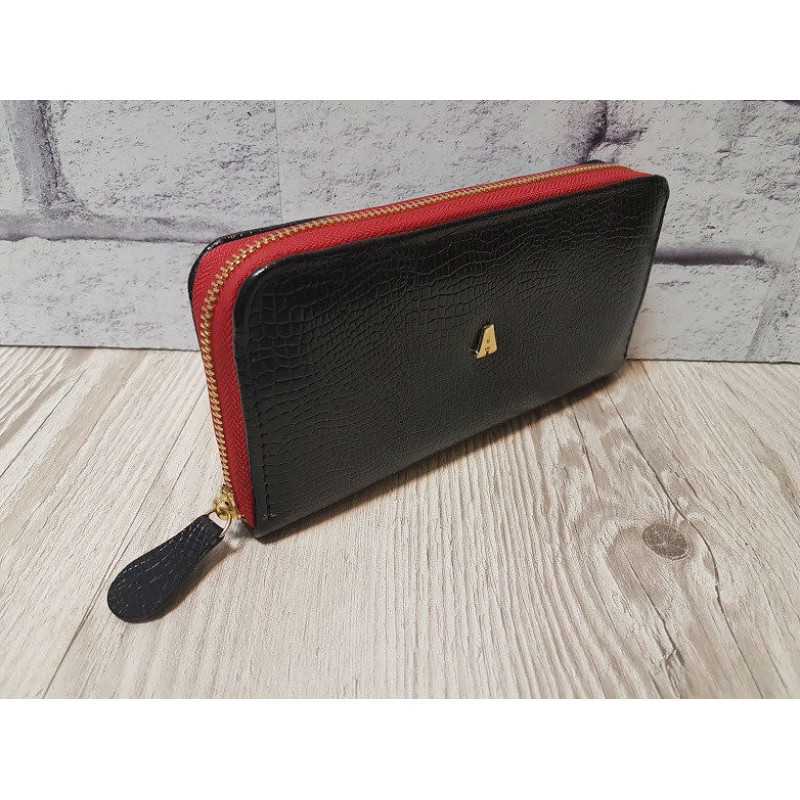 - Стильне жіноче портмоне Anko натуральна шкіра чорне під рептилію з червоним.