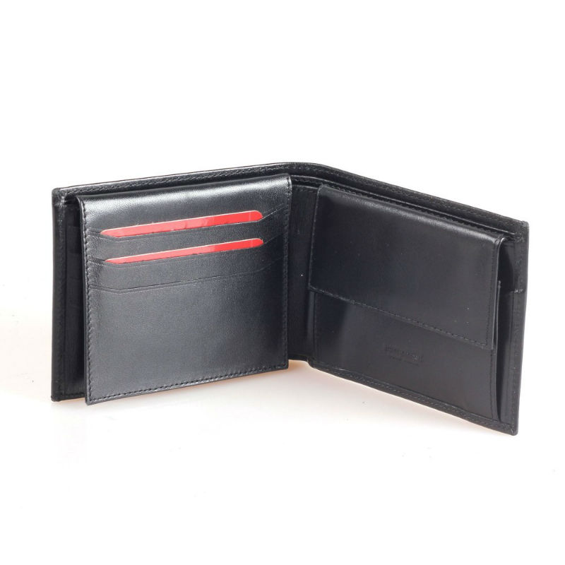 - Горизонтальне чоловіче шкіряне портмоне GRASS 301-1 чорного кольору виконаний з натуральної гладкої шкіри.