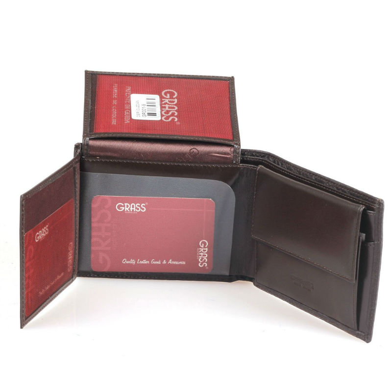 - Горизонтальне шкіряне портмоне GRASS 301-9 коричневе.