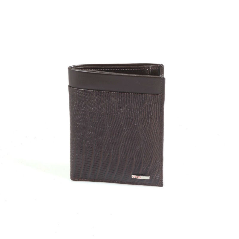 - Вертикальне чоловіче портмоне GRASS 371-33 коричневе виконано з натуральної шкіри з тисненням.