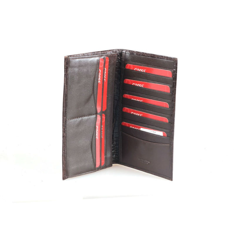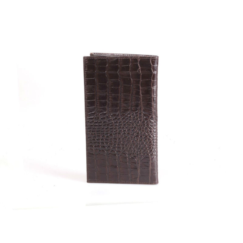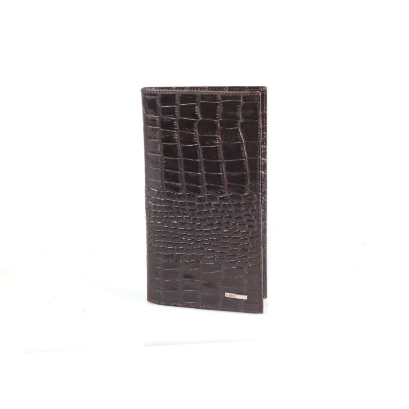 - Вертикальне чоловіче шкіряне портмоне GRASS 404-30 коричневого кольору з крокодиловим тисненням.