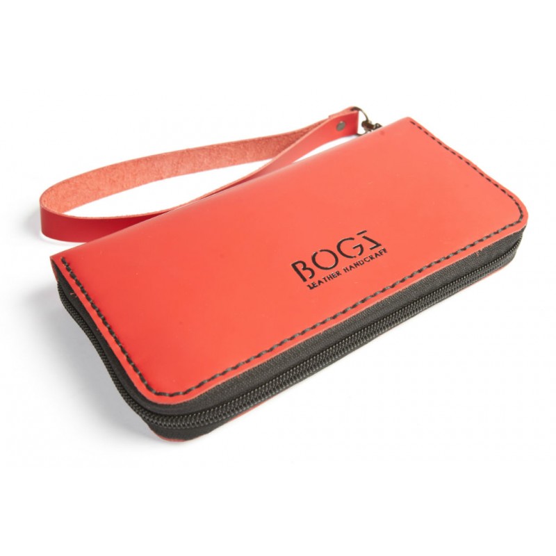 - Шкіряне портмоне BOGZ «Multivision» P13M12S1 червоне, прошитий чорною ниткою.
