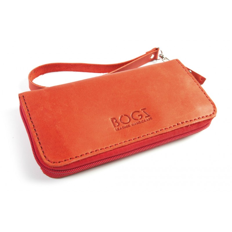 - Шкіряне портмоне BOGZ «Multivision» P13M39S1 виконано з натуральної шкіри Crazy Horse червоного кольору.
