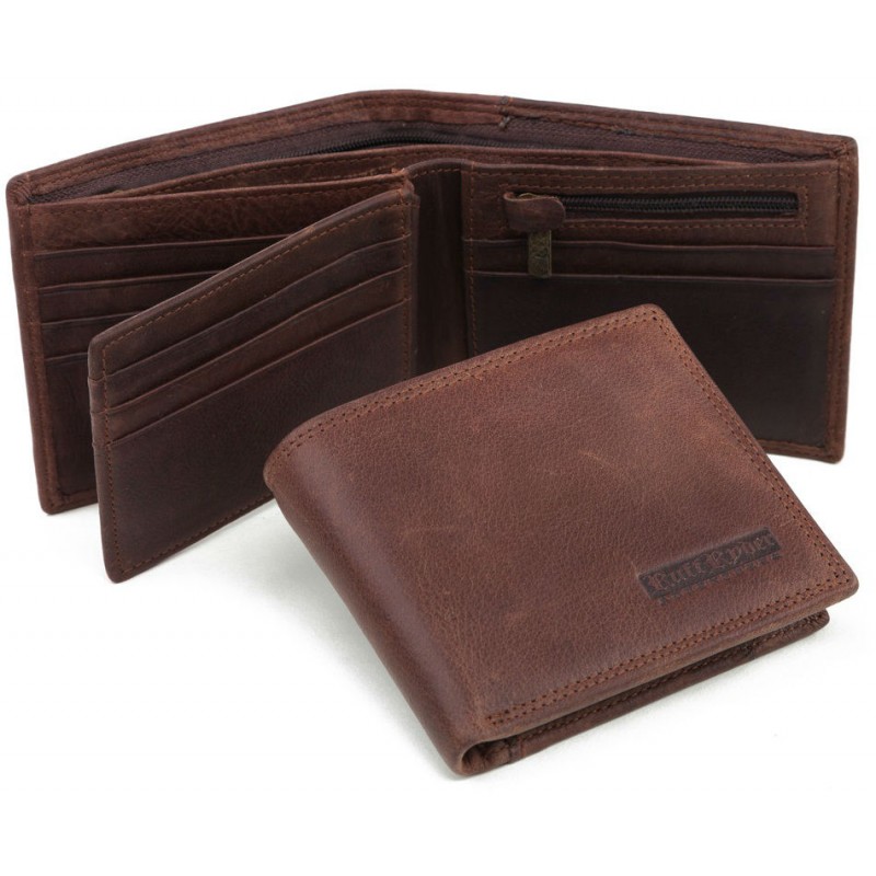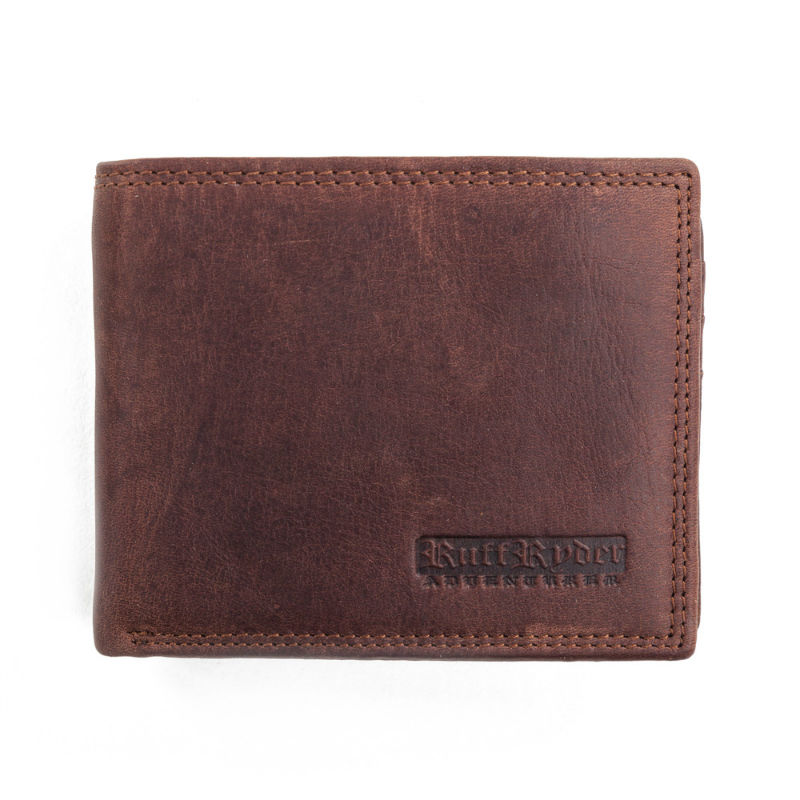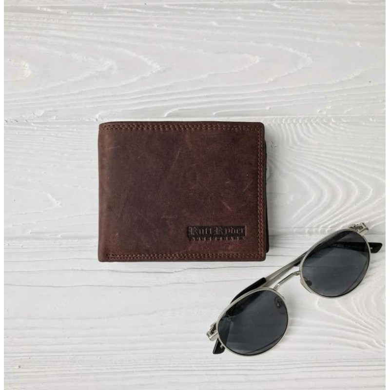 - Красиве чоловіче портмоне Ruff Ryder RR-38233W коричневе з вінтажної натуральної шкіри.